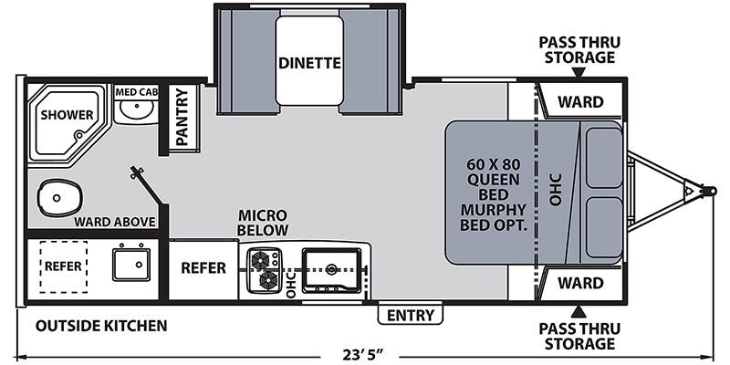 Composantes Intérieur | Cuisinière 2 ronds, Dinette Régulière, lit Queen, Micro-onde Régulier, Télévision |